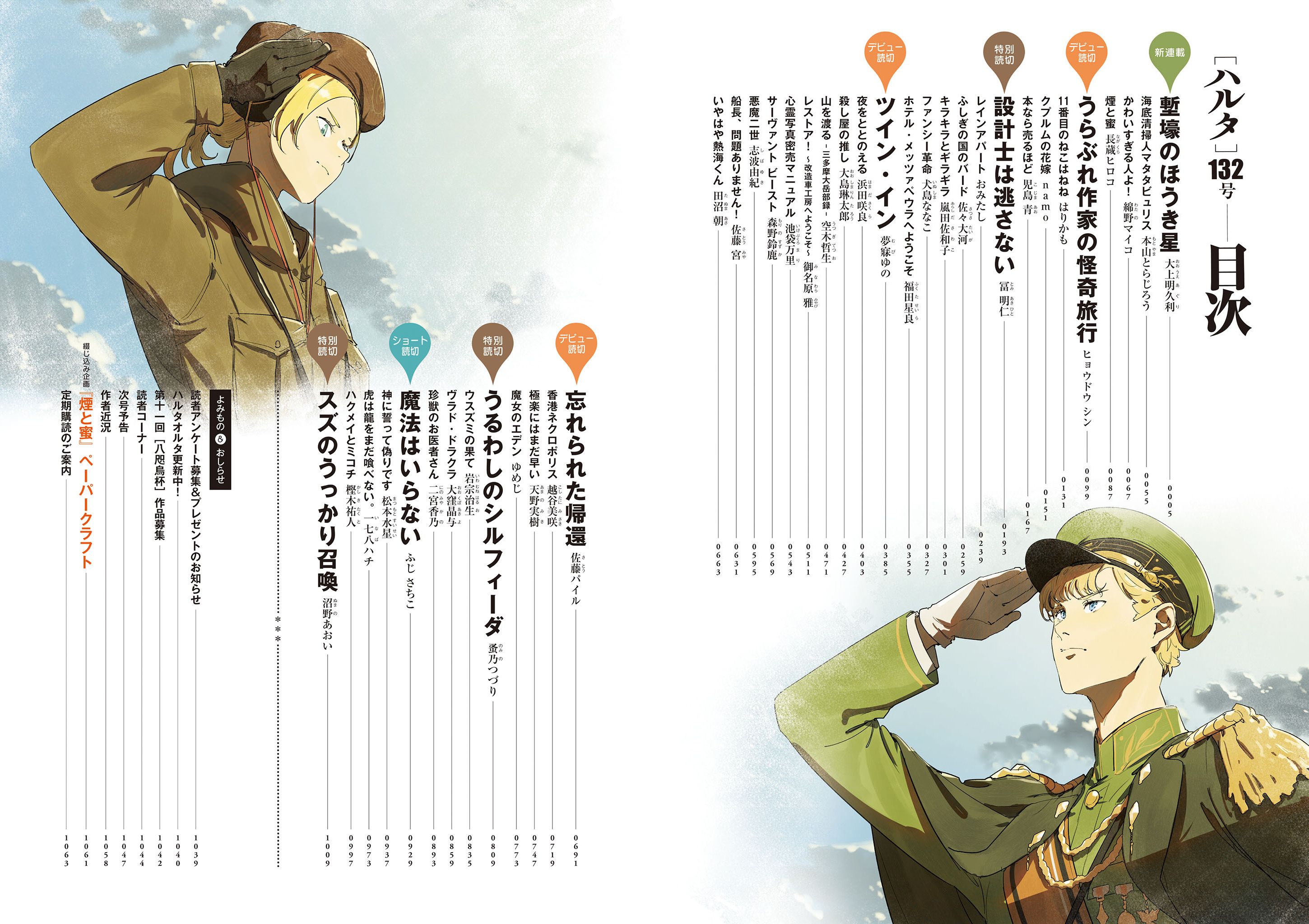 大上明久利/本山とらじろう/綿野マイコ/長蔵ヒロコ/ヒョウドウ シン/はりかも/namo/児島 青/冨 明仁/おみたし/佐々大河/嵐田佐和子/犬島ななこ/福田星良/夢寐ゆの/浜田咲良/大島琳太郎/空木哲生/御名原 雅/池袋万里/森野鈴鹿/志波由紀/佐藤 宮/田沼 朝/佐藤パイル/越谷美咲/天野実樹/ゆめじ/蚤乃つづり/岩宗治生/大窪晶与/二宮香乃/ふじさちこ/松本水星/一七八ハチ/樫木祐人/沼野あおい