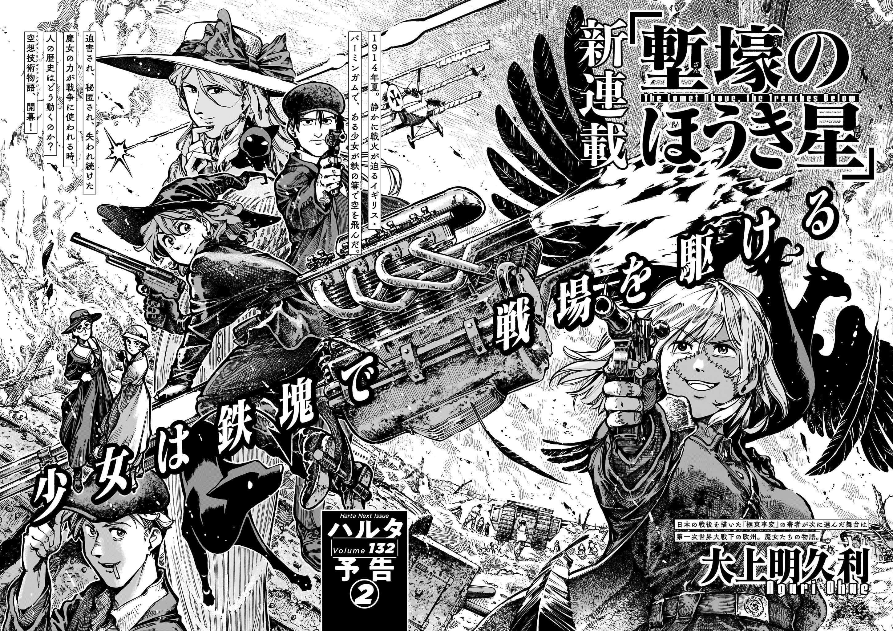 ◆『塹壕のほうき星』大上明久利-1914年。戦火の迫るイギリス・バーミンガムで、魔女のモニカが機械仕掛けのほうきで空を飛んだ。後に「第一次世界大戦」と呼ばれることになる大戦争に巻き込まれ、翻弄され、時に利用し生き抜く魔女達を描く大上明久利の新連載スタート! 魔法×兵器のインダストリアル・ファンタジー開幕!