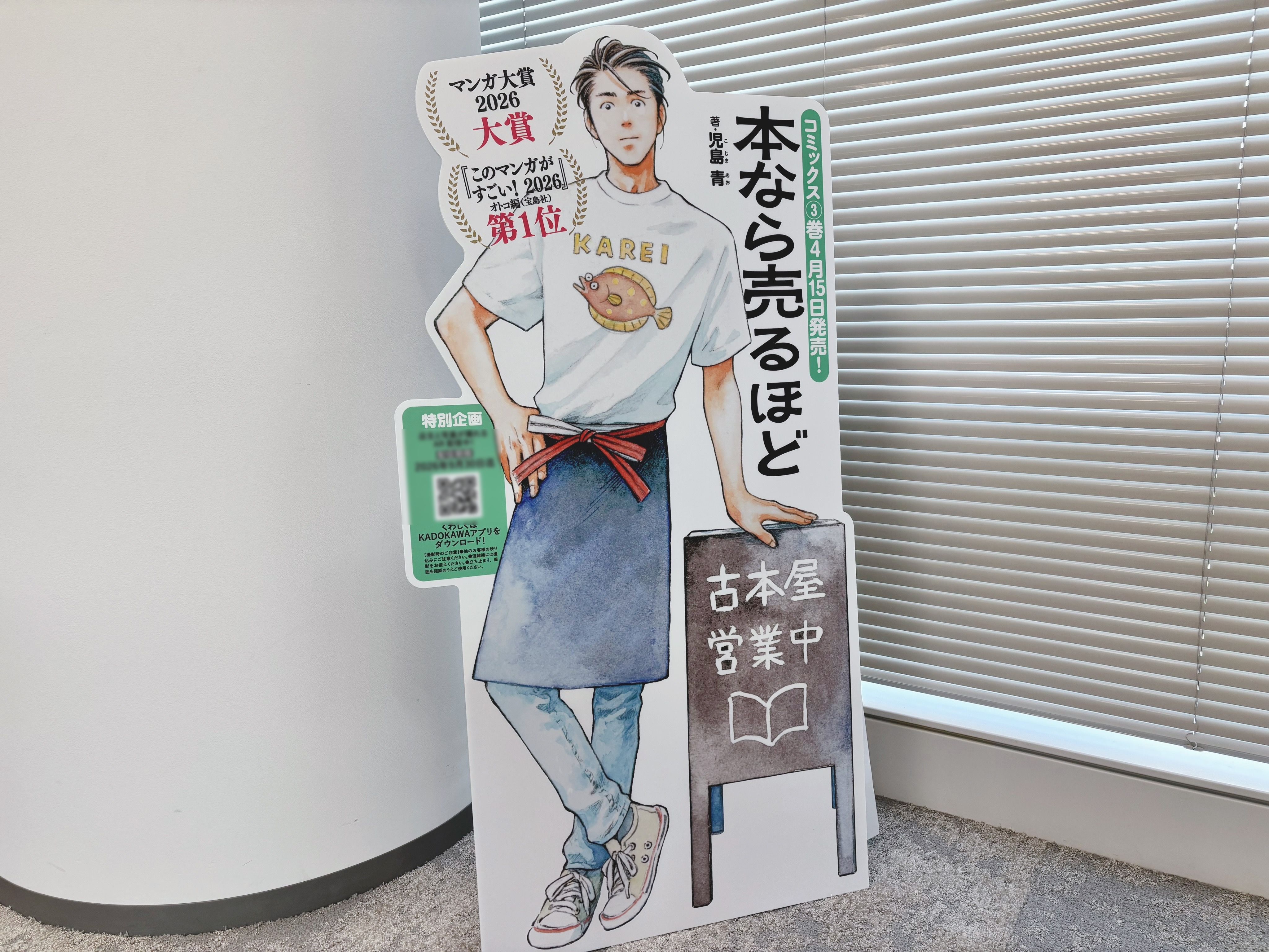 「マンガ大賞」受賞を記念して、3巻のカバーを飾る店主を大きなパネルにいたしました。一部の書店では、店主と一緒に写真が撮れるAR企画を実施中。