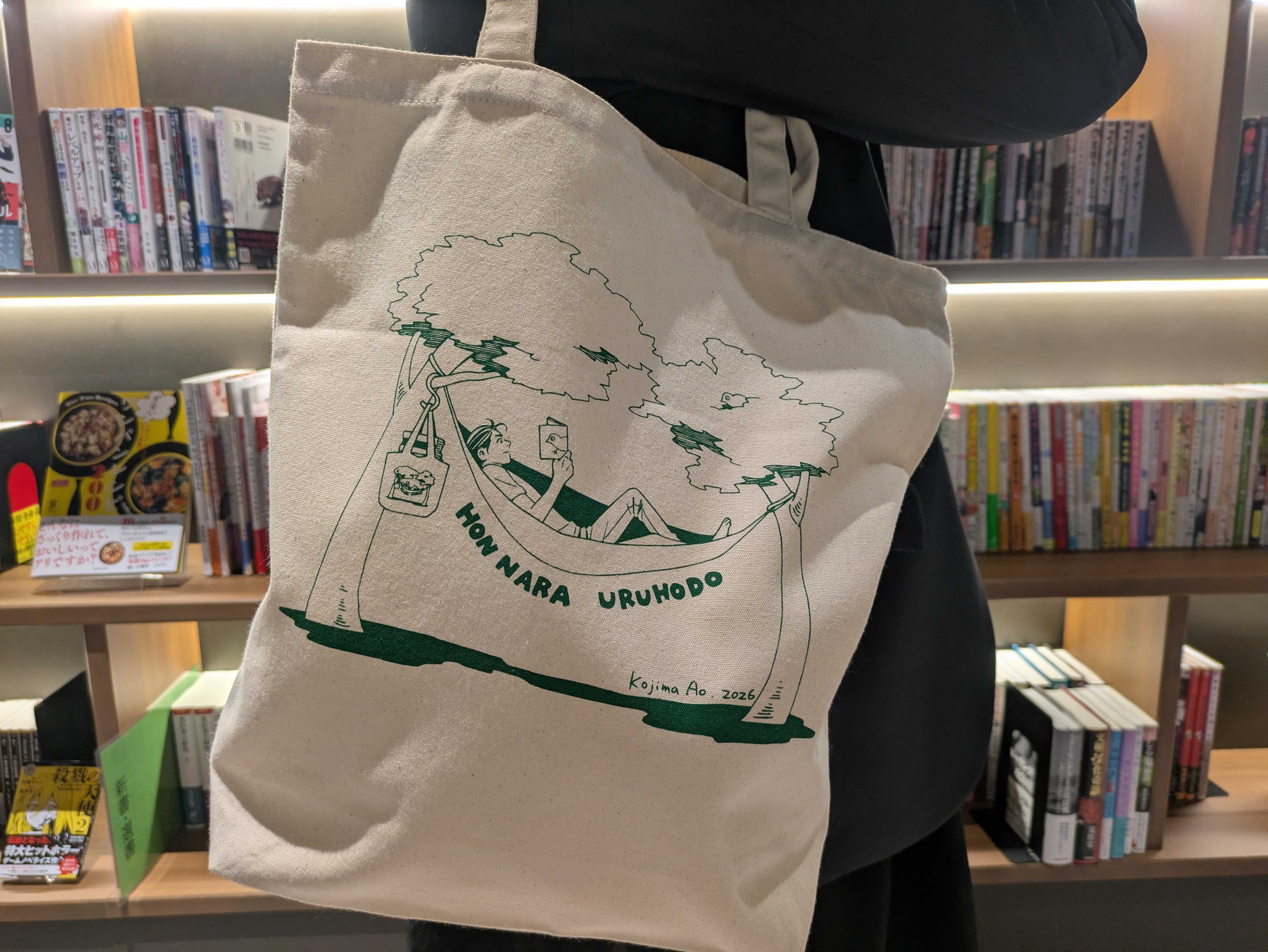 児島青さんがイラストを描き下ろしたオリジナルグッズ、その名も「愛書家トートバッグ」を作りました! 書店に持参してたくさん本を買って帰るも良し。バッグ・イン・バッグとして本を守るのに使うのも良し。本を持ち歩くのが楽しくなる逸品です。『本なら売るほど』3巻(紙書籍版)のオビについている半券を、ハルタ134号(紙書籍版)に綴じこまれている応募はがきに貼り、85円切手を貼って投函すると、抽選で100名様に当たります。ぜひ応募してくださいね!